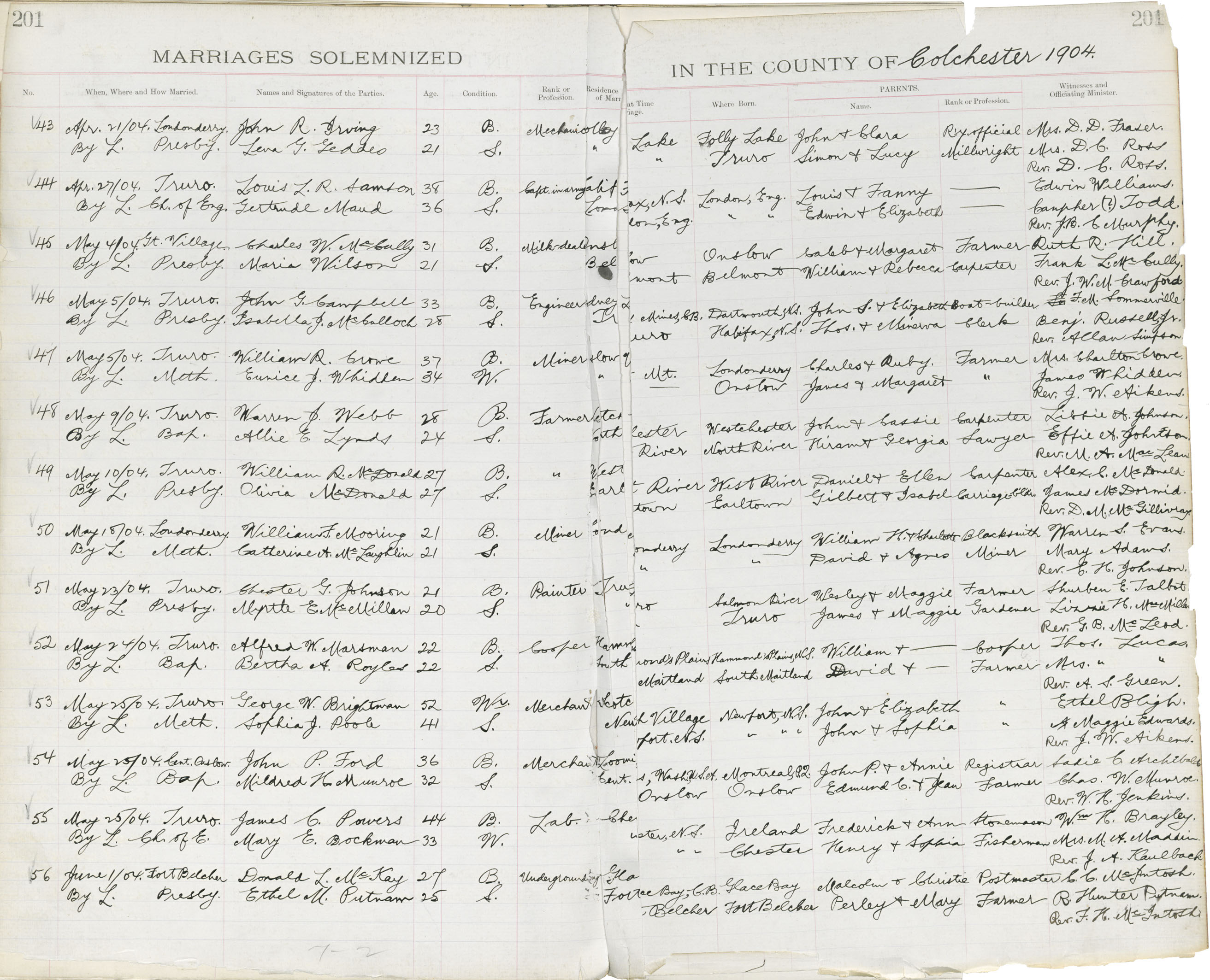 Registration: Year: 1904 book: 1807 page: 201 number: 56