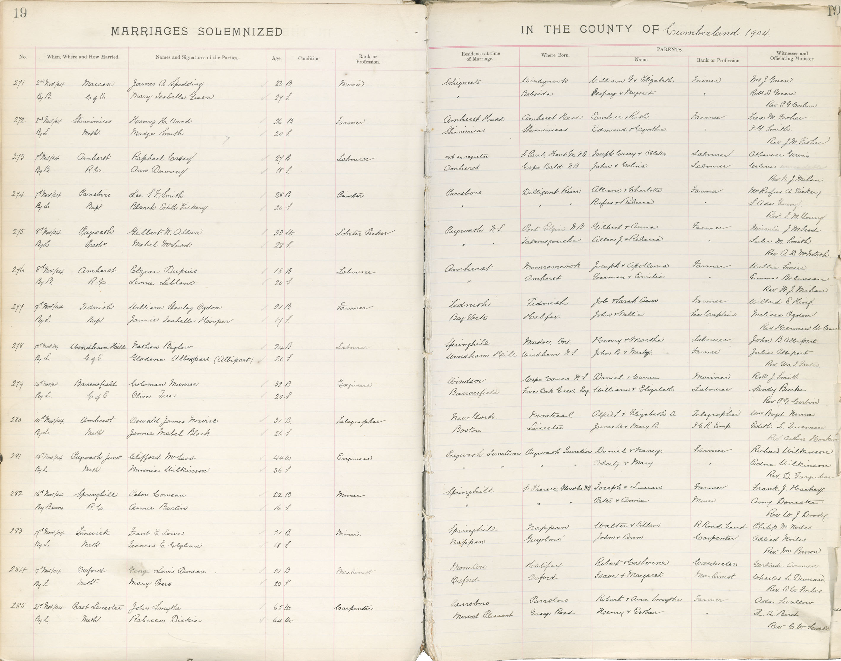 Registration: Year: 1904 book: 1811 page: 19 number: 285