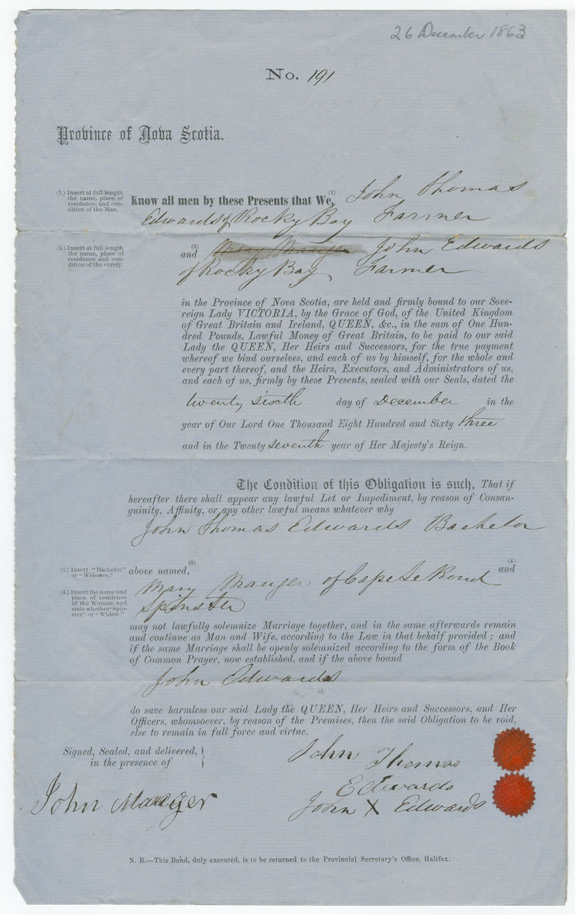 Note: signed by John Edwards, Rocky Bay, farmer