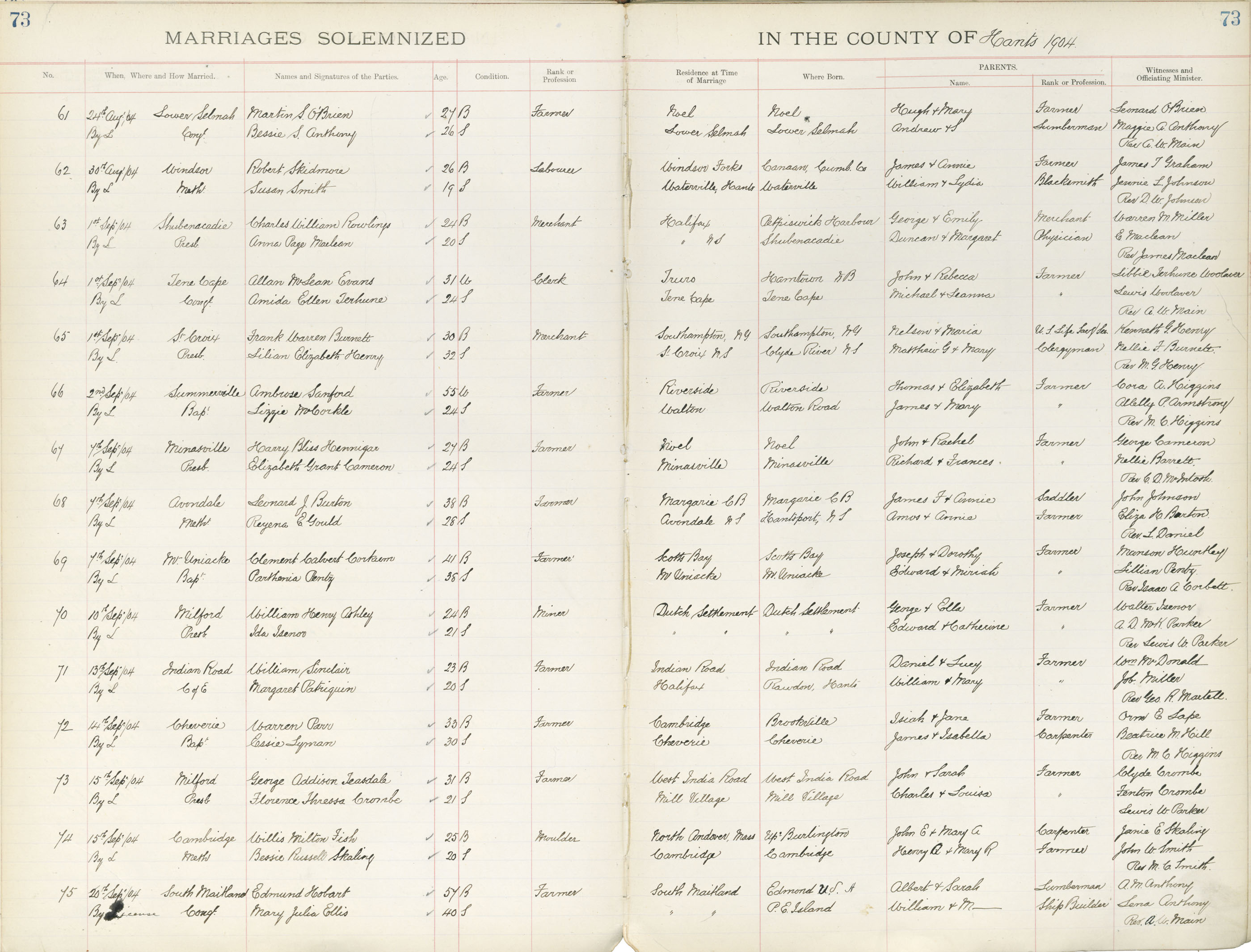 Registration: Year: 1904 book: 1824 page: 73 number: 61