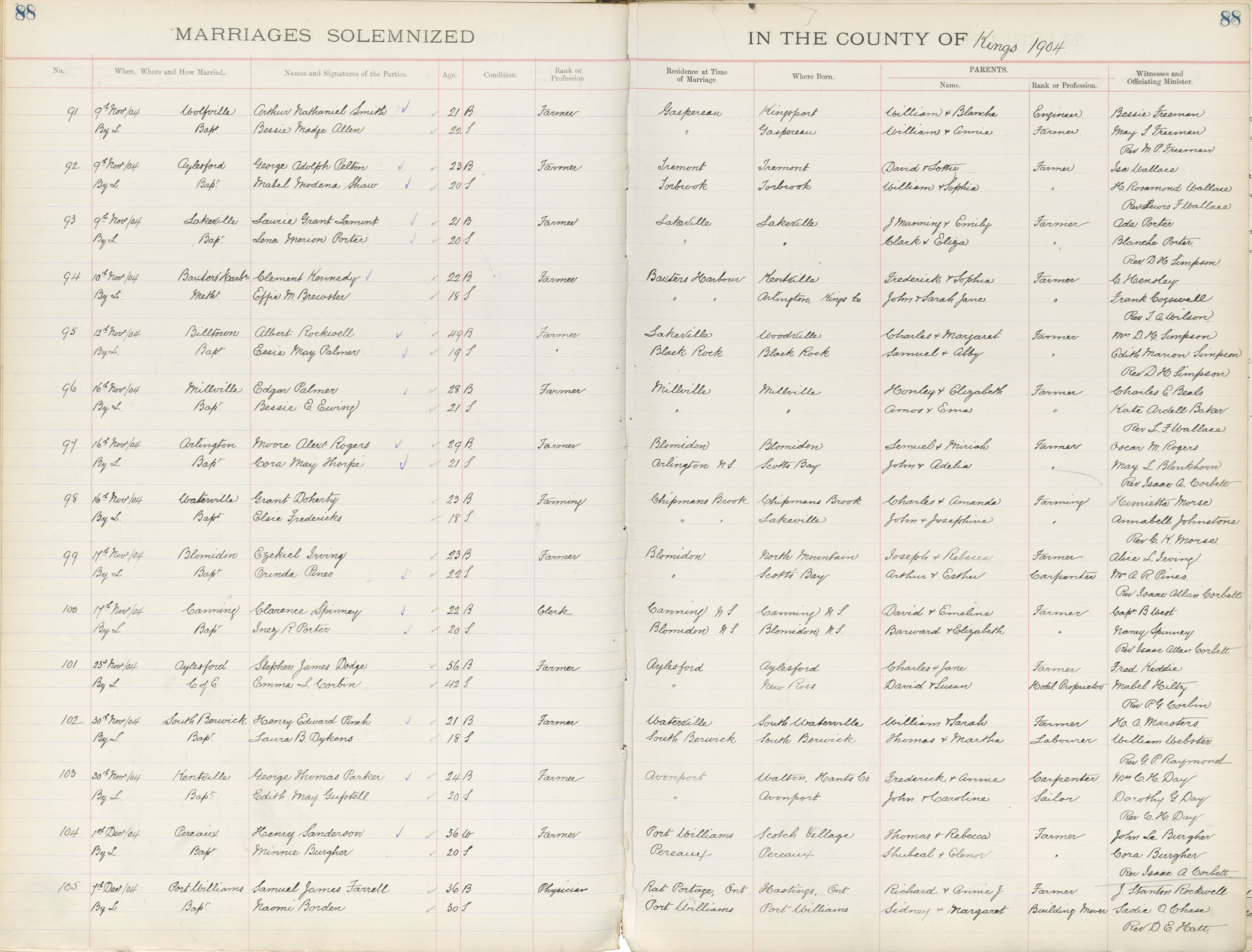 Registration: Year: 1904 book: 1827 page: 88 number: 91