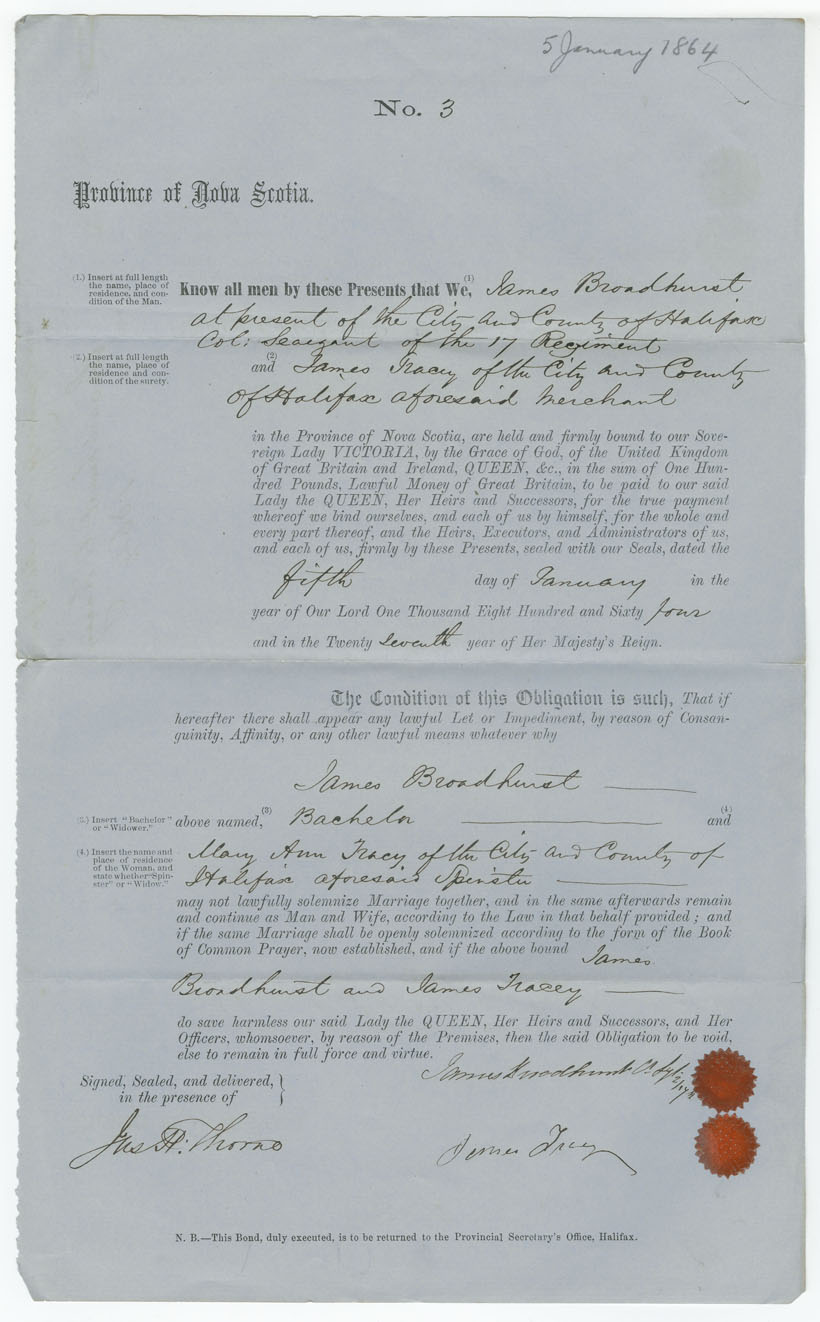 Note: signed by James Tracy, Halifax, merchant