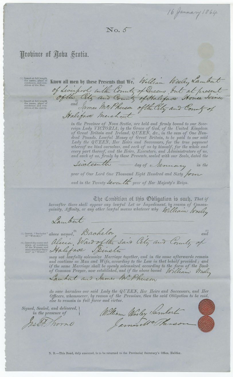 Note: signed by James McPherson, Halifax, merchant