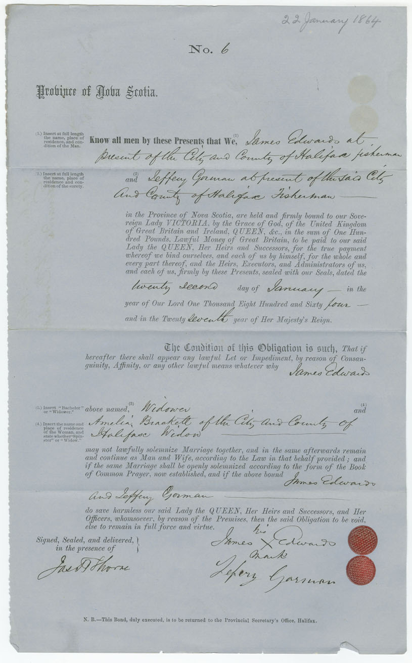 Note: signed by Jeffery Gorman, Halifax, fisherman
