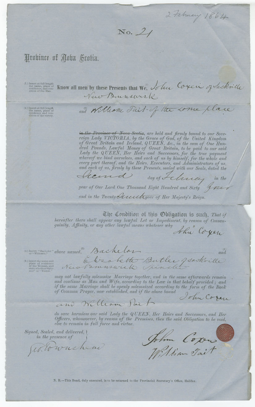 Note: signed by William Tait, Sackville, New Brunswick