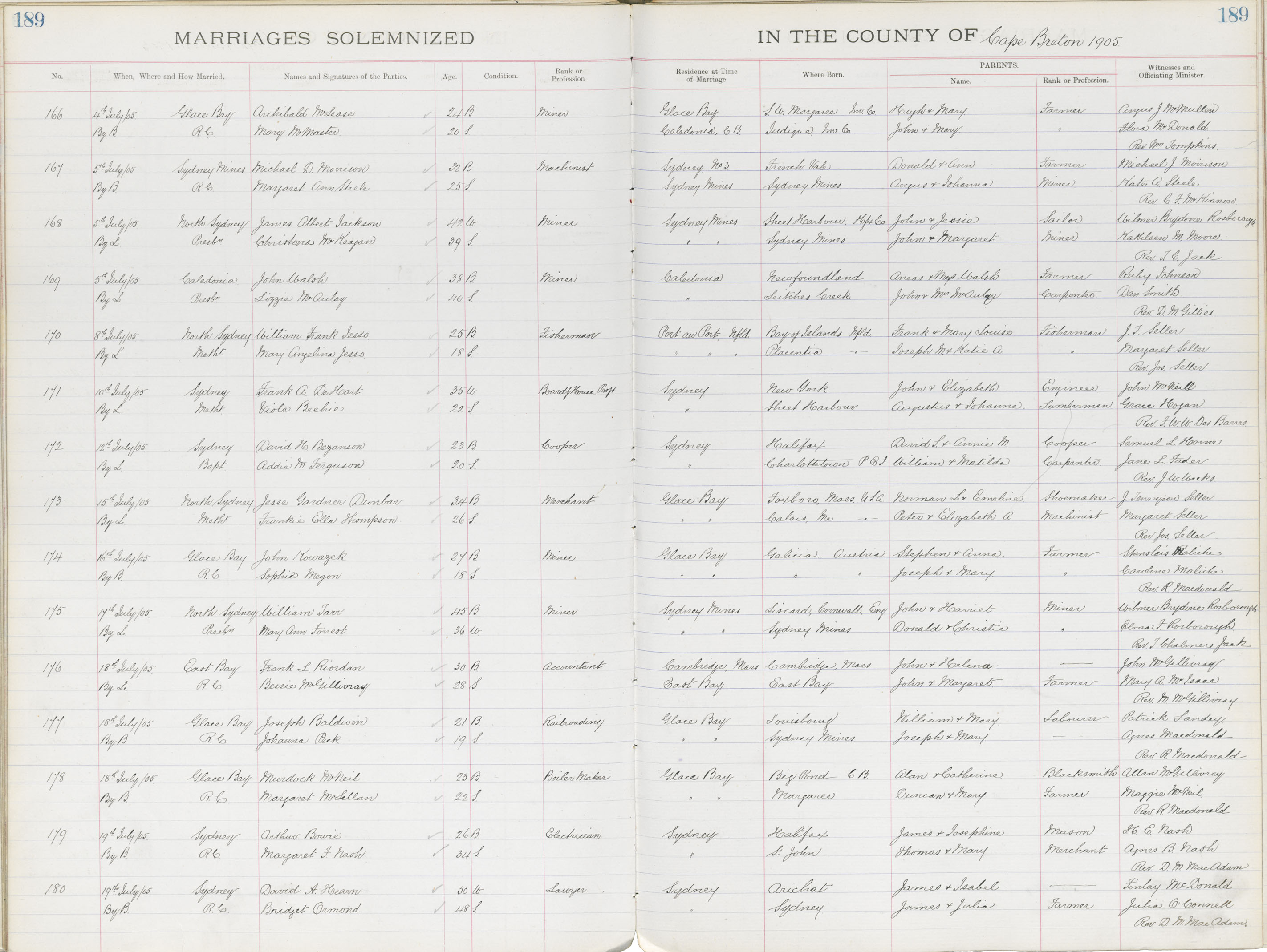 Registration: Year: 1905 book: 1805 page: 189 number: 180