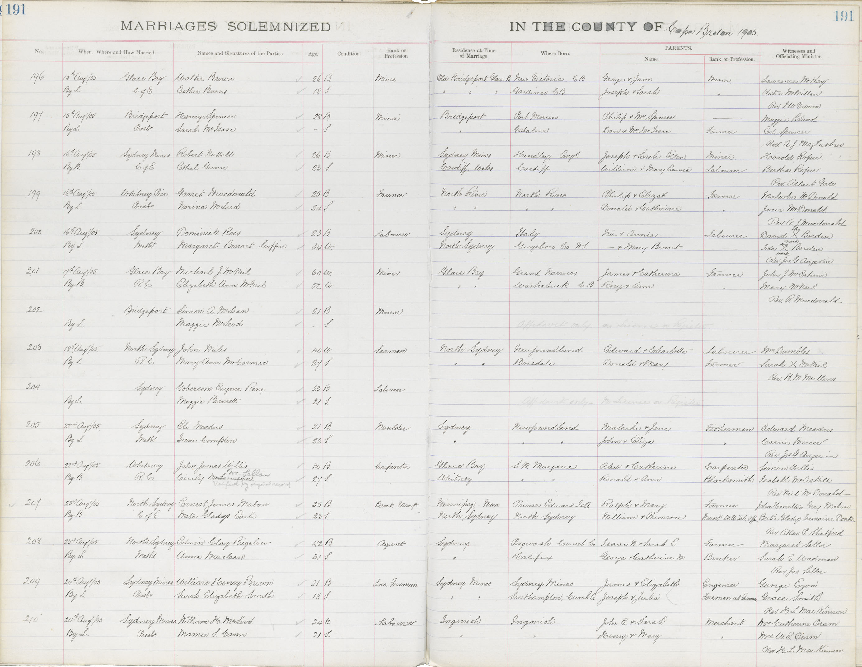 Registration: Year: 1905 book: 1805 page: 191 number: 199