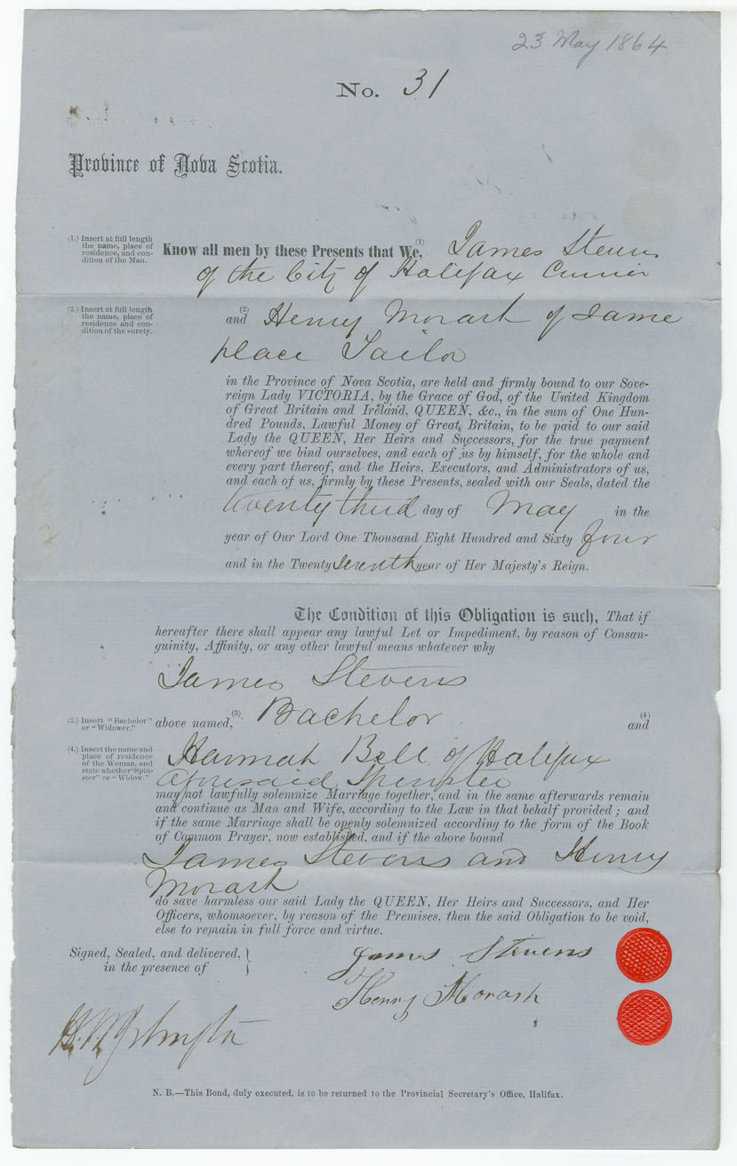 Note: signed by Henry Morash, Halifax, tailor