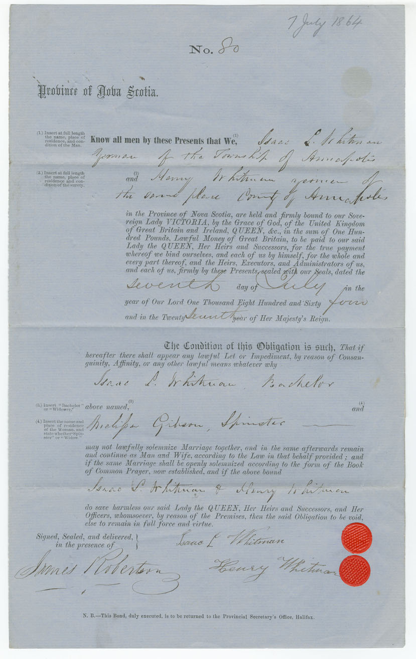 Note: signed by Henry Whitman, Annapolis, yeoman