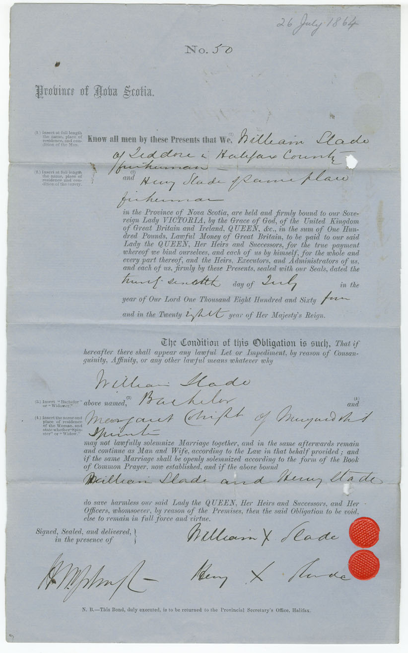 Note: signed by Henry Slade, Jeddore, fisherman