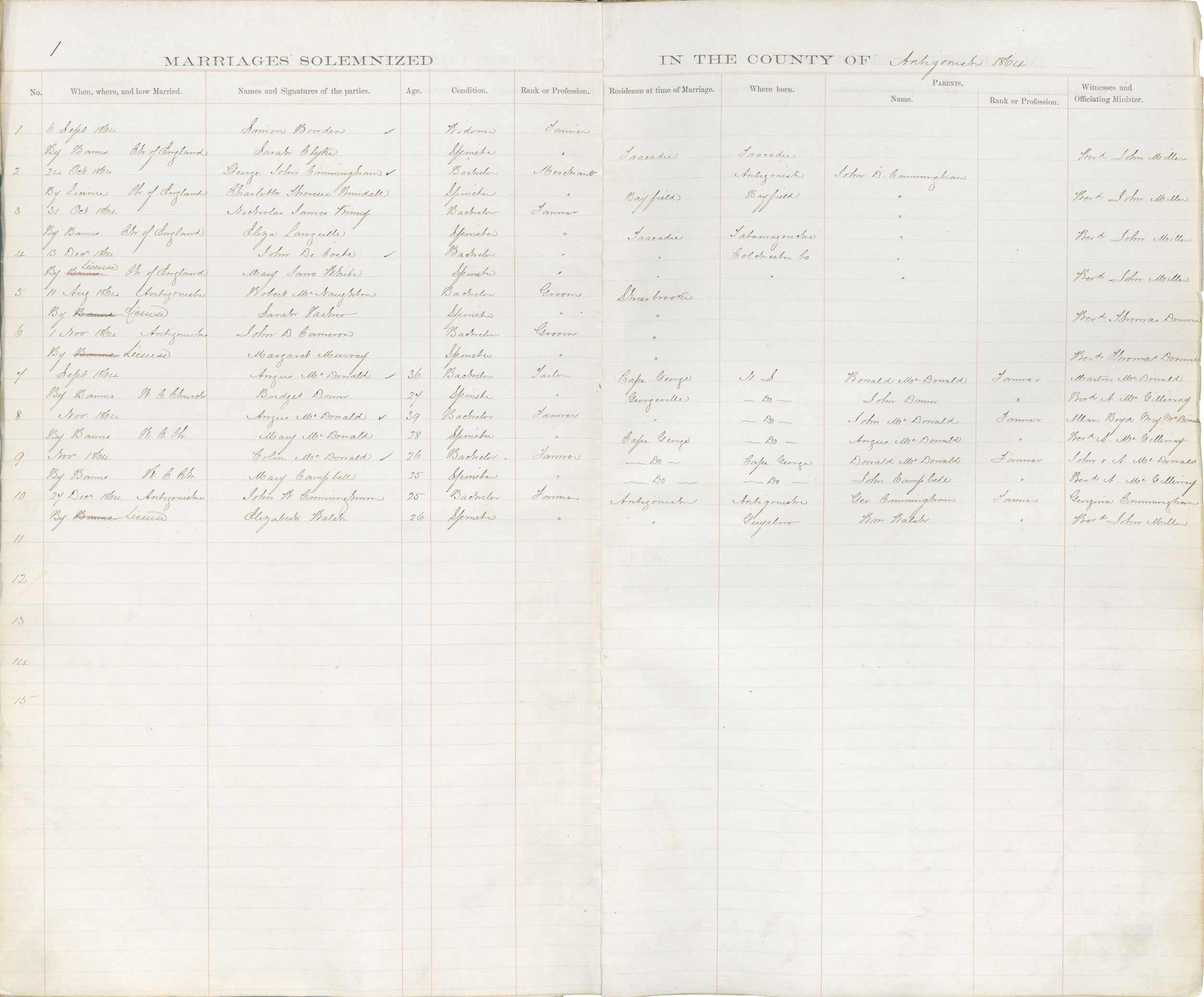 Registration: Year: 1864 book: 1803 page: 1 number: 10