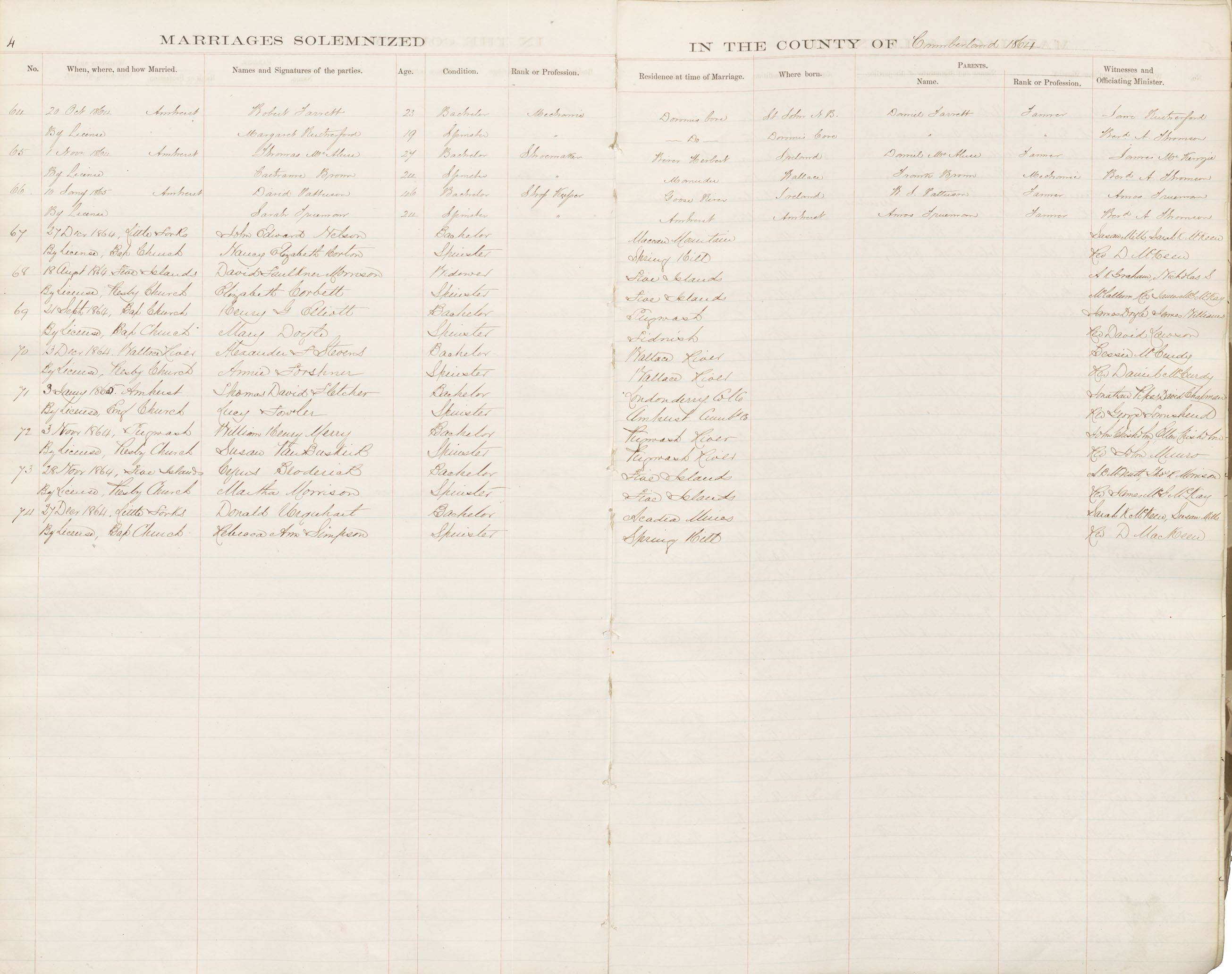 Registration: Year: 1864 book: 1809 page: 4 number: 74