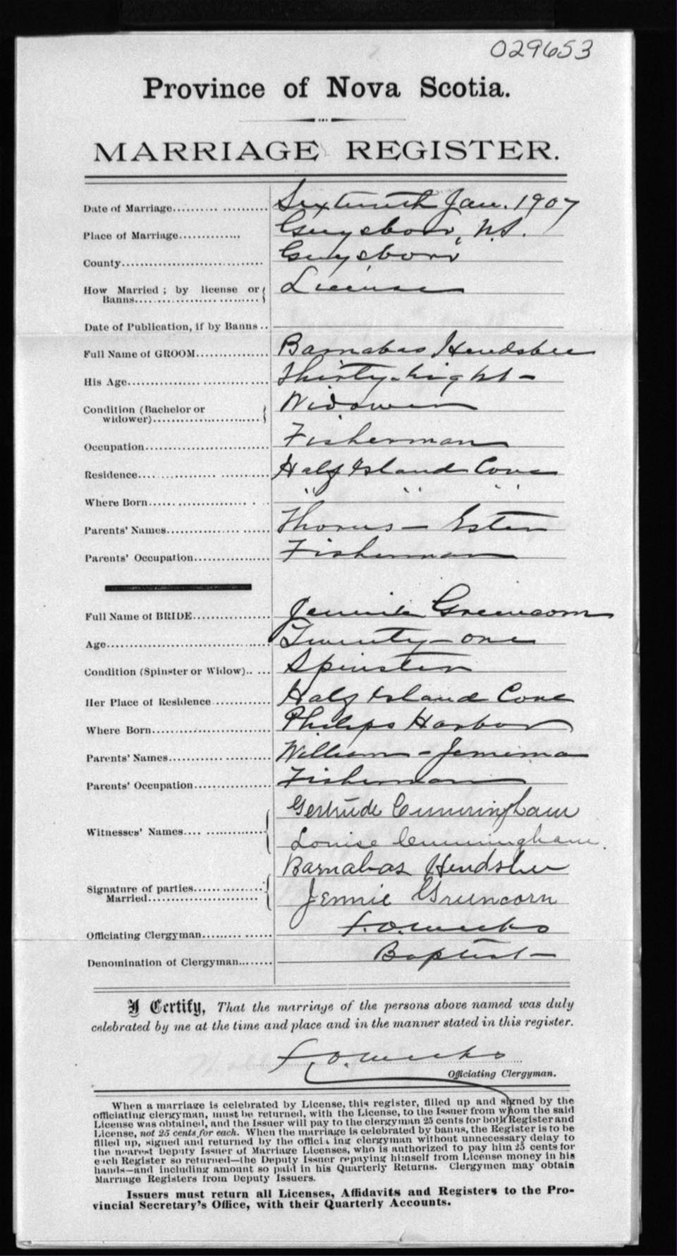 Registration: Year: 1907 number: 29653