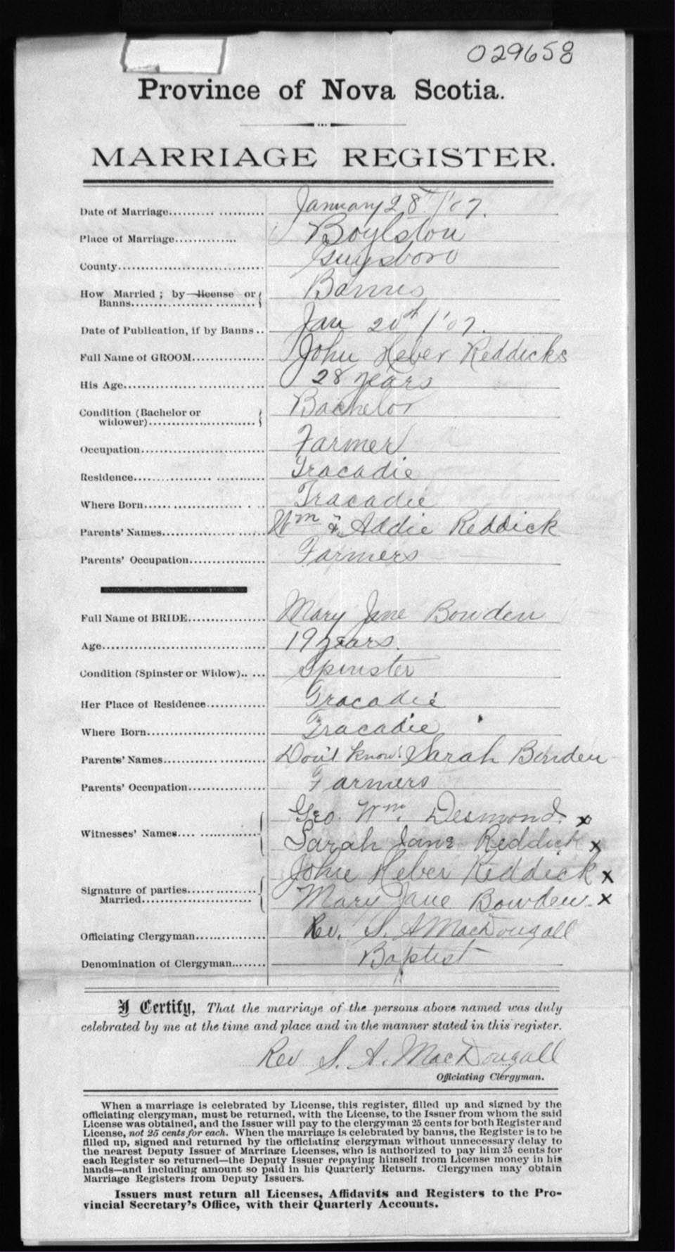 Registration: Year: 1907 number: 29658