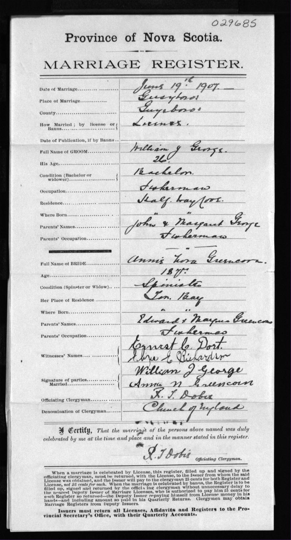 Registration: Year: 1907 number: 29685