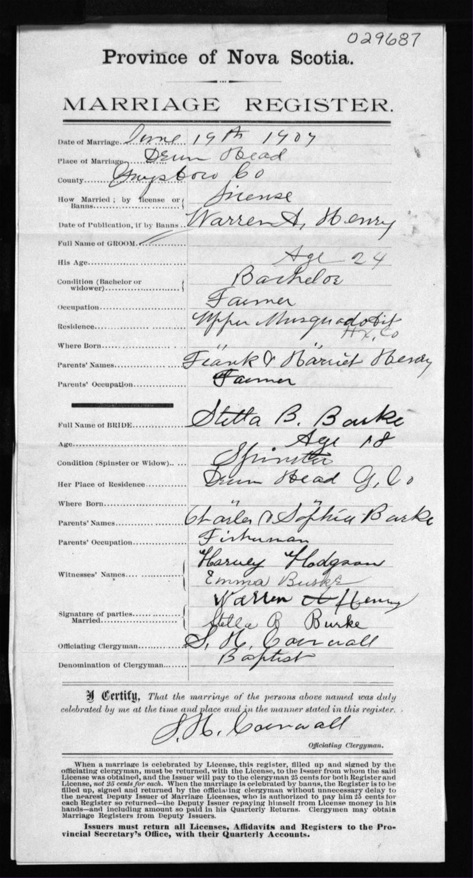 Registration: Year: 1907 number: 29687