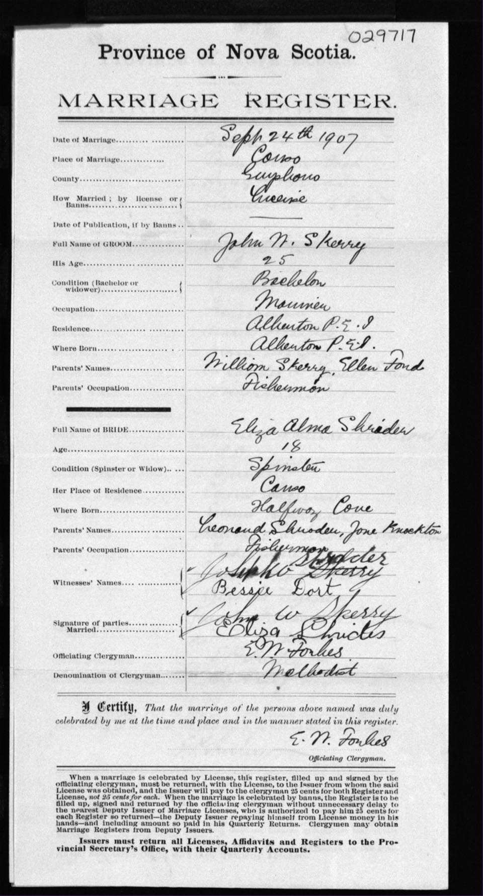 Registration: Year: 1907 number: 29717