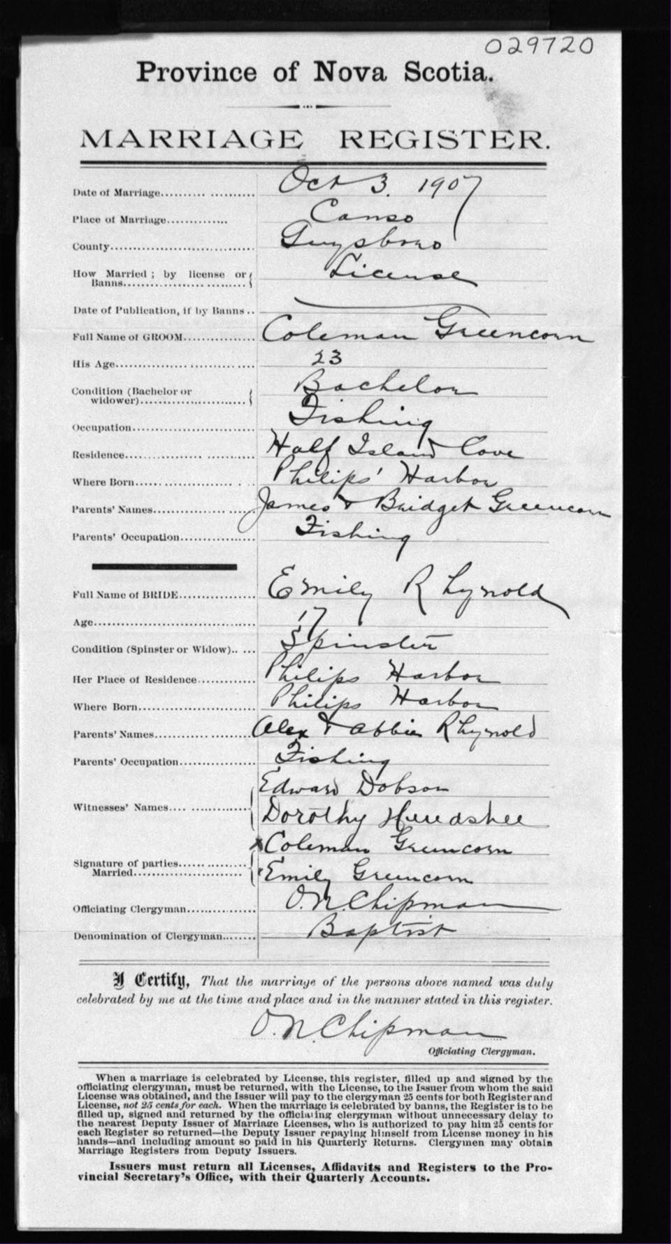 Registration: Year: 1907 number: 29720