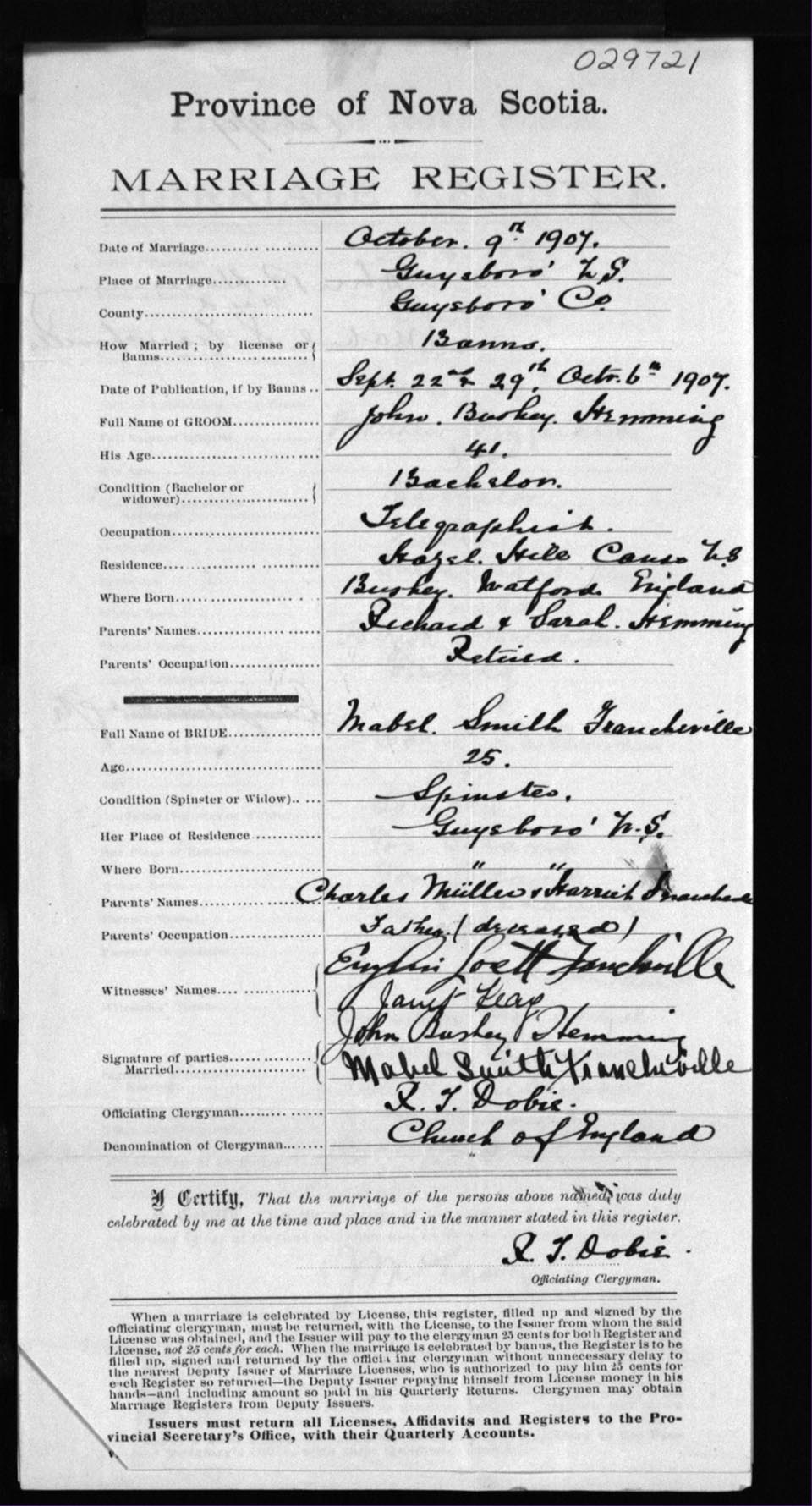 Registration: Year: 1907 number: 29721