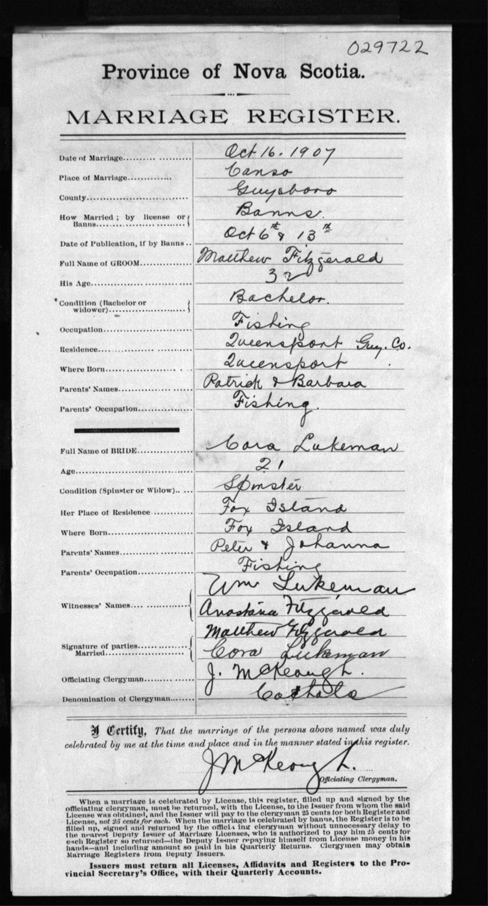 Registration: Year: 1907 number: 29722