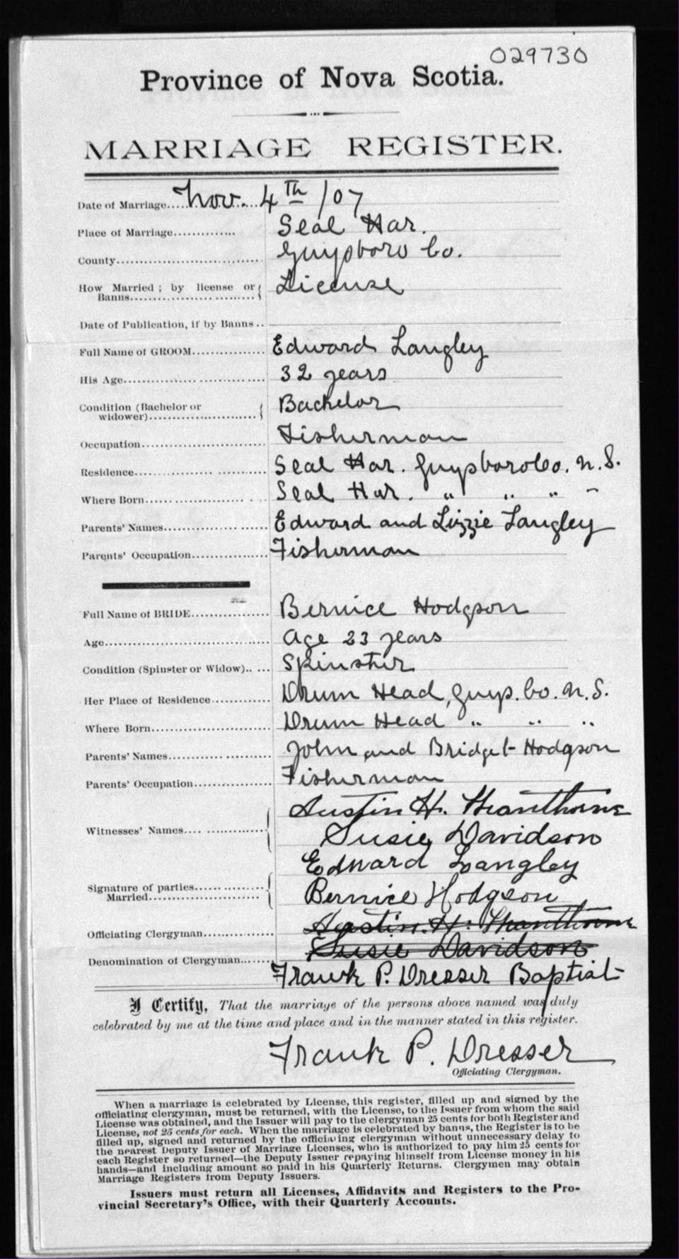 Registration: Year: 1907 number: 29730