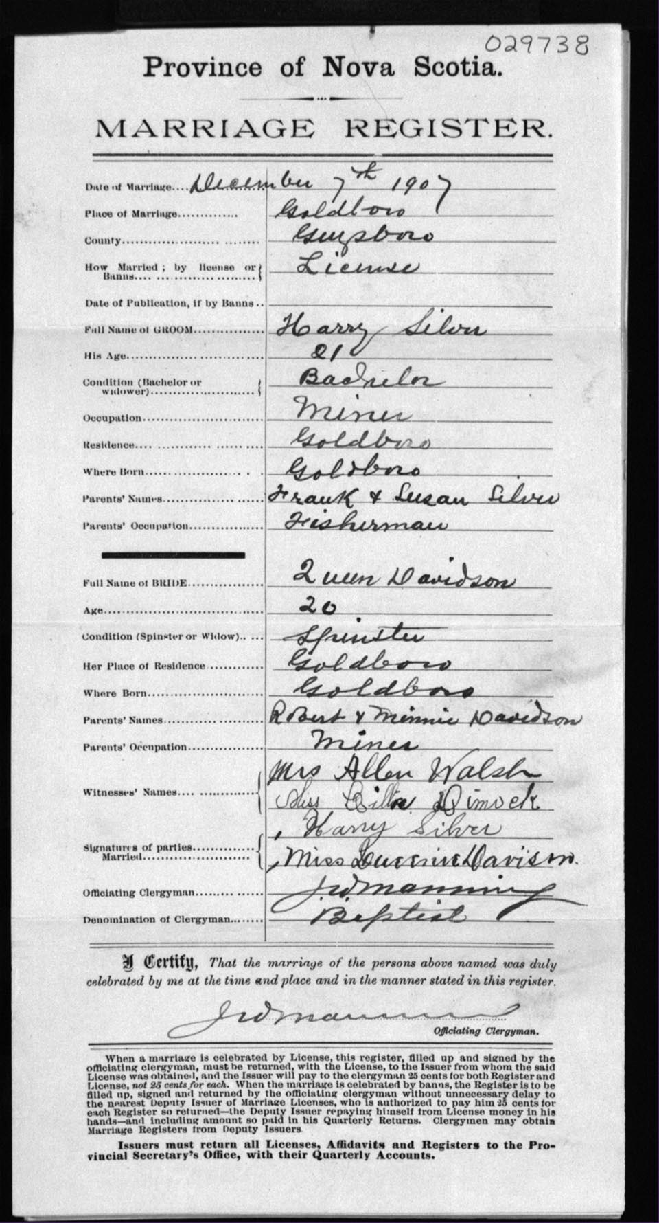 Registration: Year: 1907 number: 29738