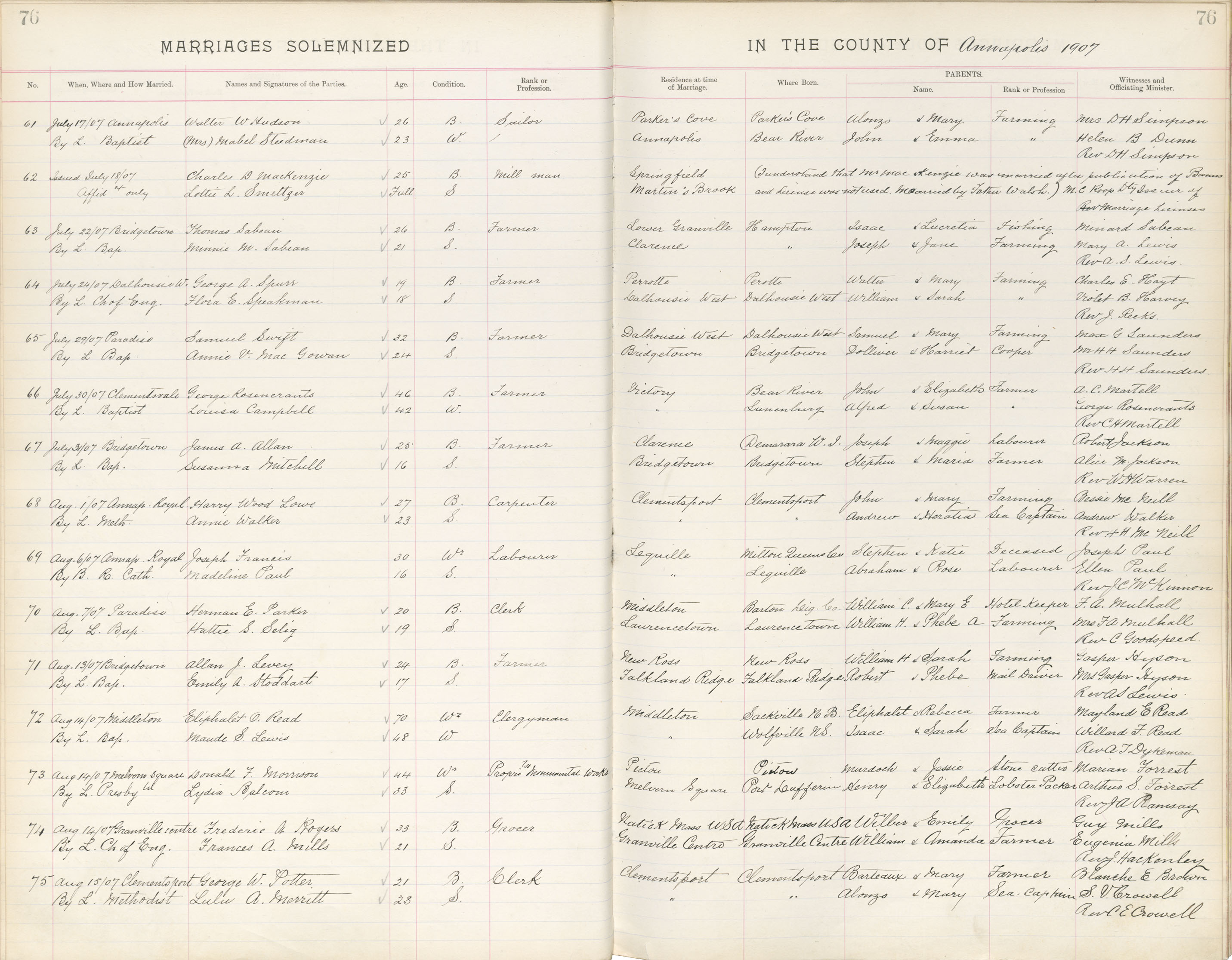 Registration: Year: 1907 book: 1802 page: 76 number: 75