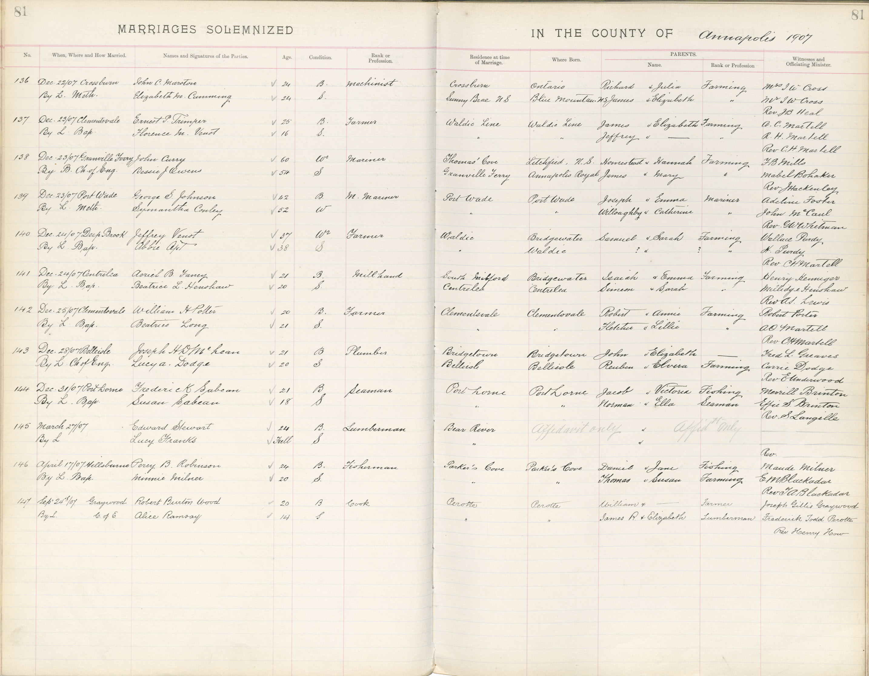 Registration: Year: 1907 book: 1802 page: 81 number: 143