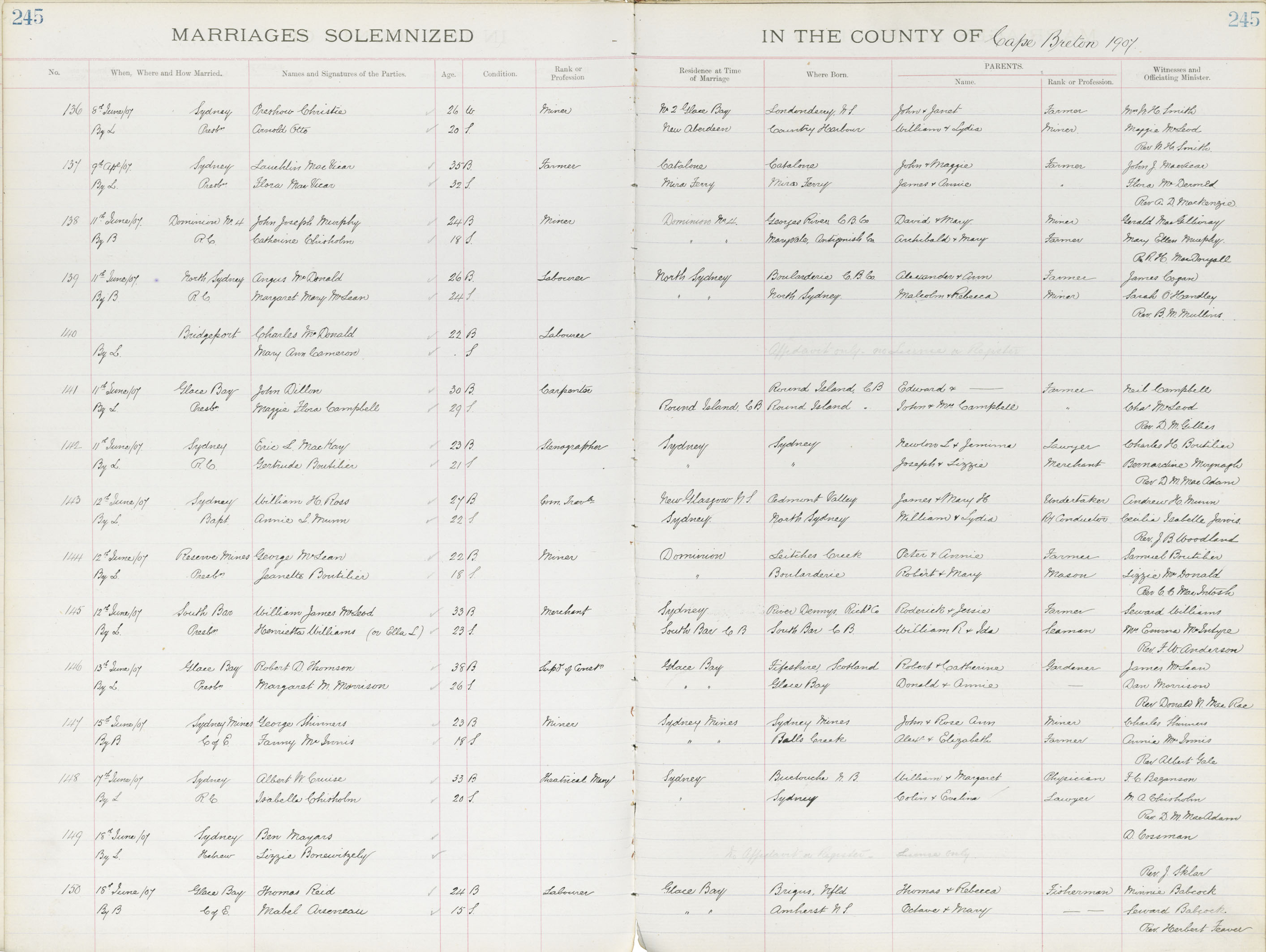 Registration: Year: 1907 book: 1805 page: 245 number: 150