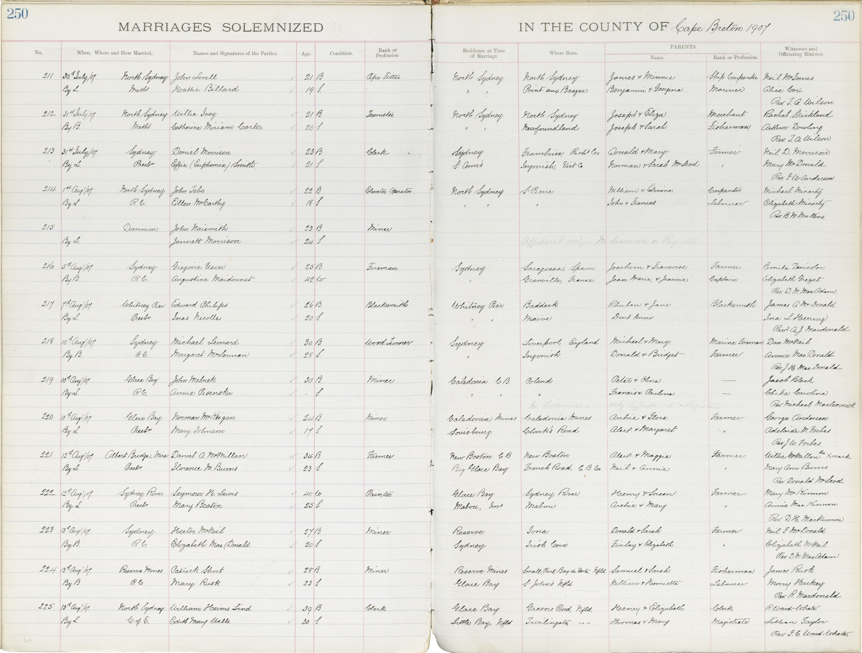 Registration: Year: 1907 book: 1805 page: 250 number: 223