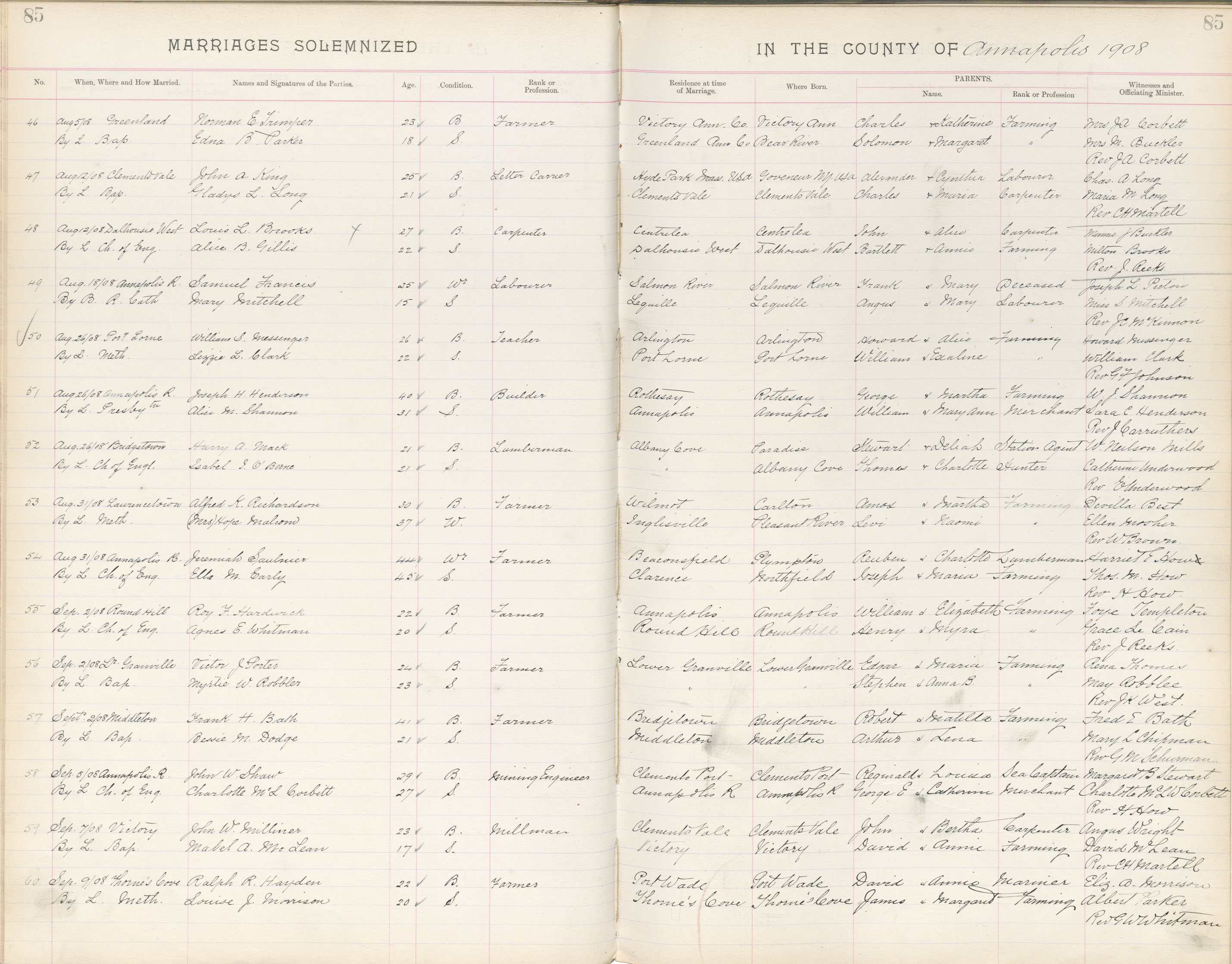 Registration: Year: 1908 book: 1802 page: 85 number: 60