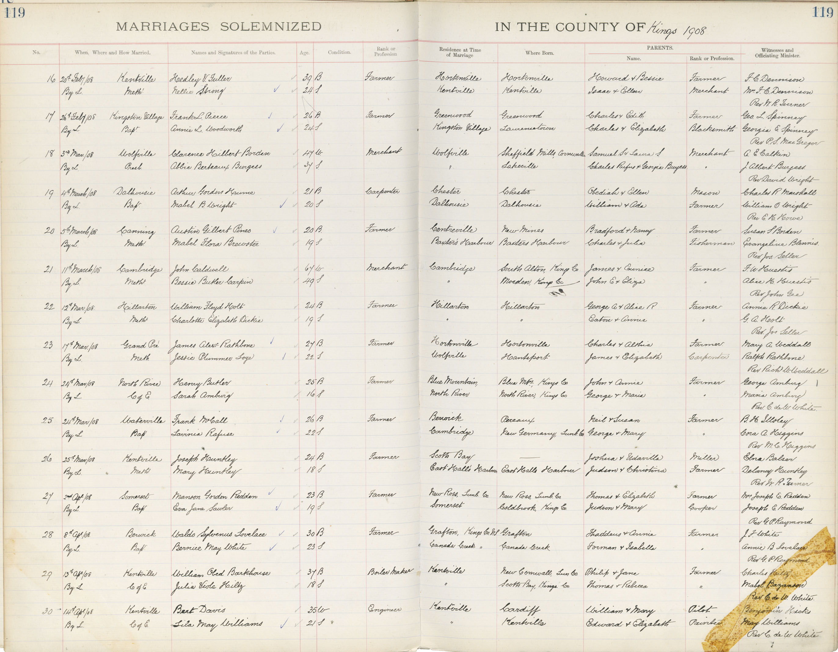 Registration: Year: 1908 book: 1827 page: 119 number: 16