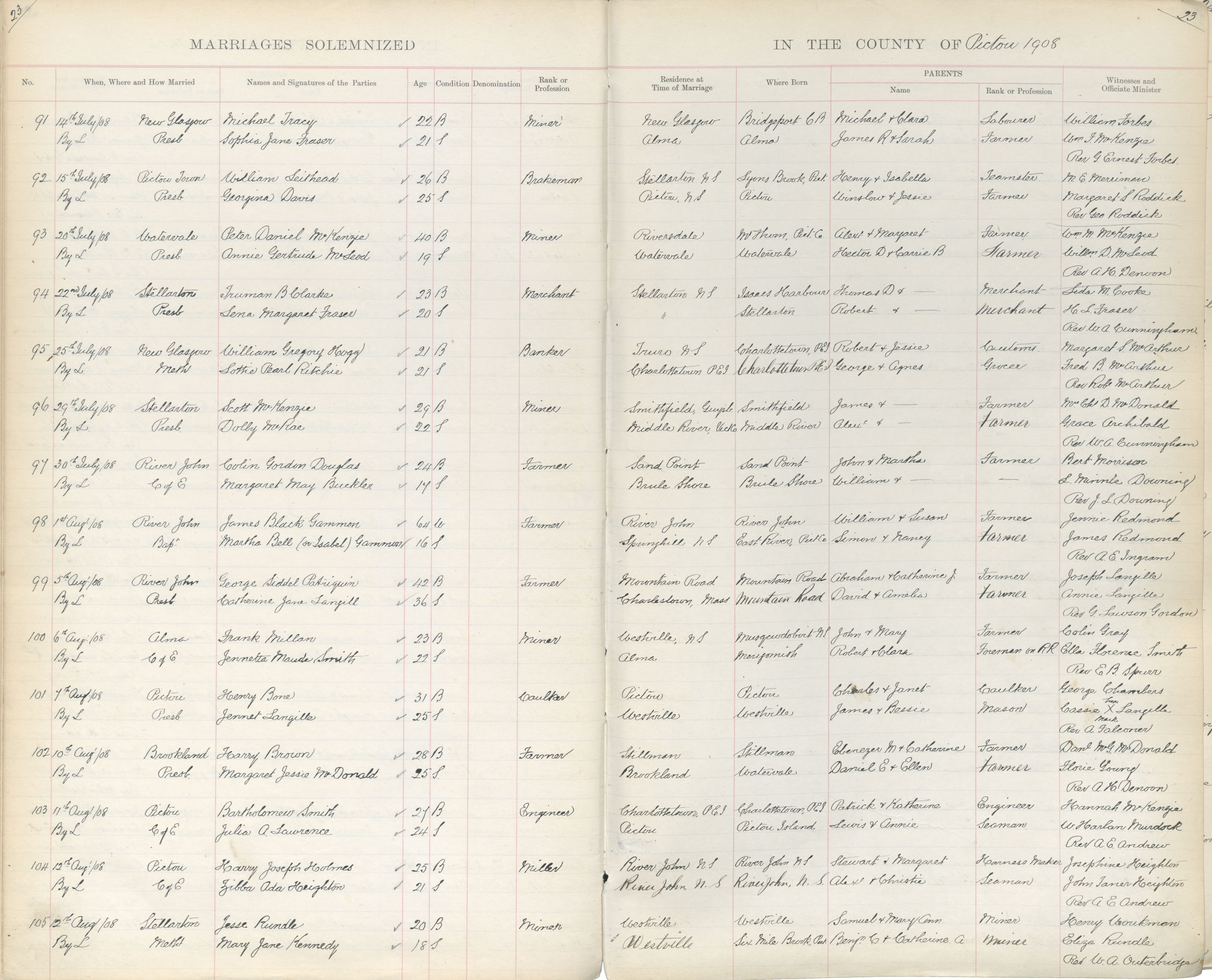 Registration: Year: 1908 book: 1833 page: 23 number: 91