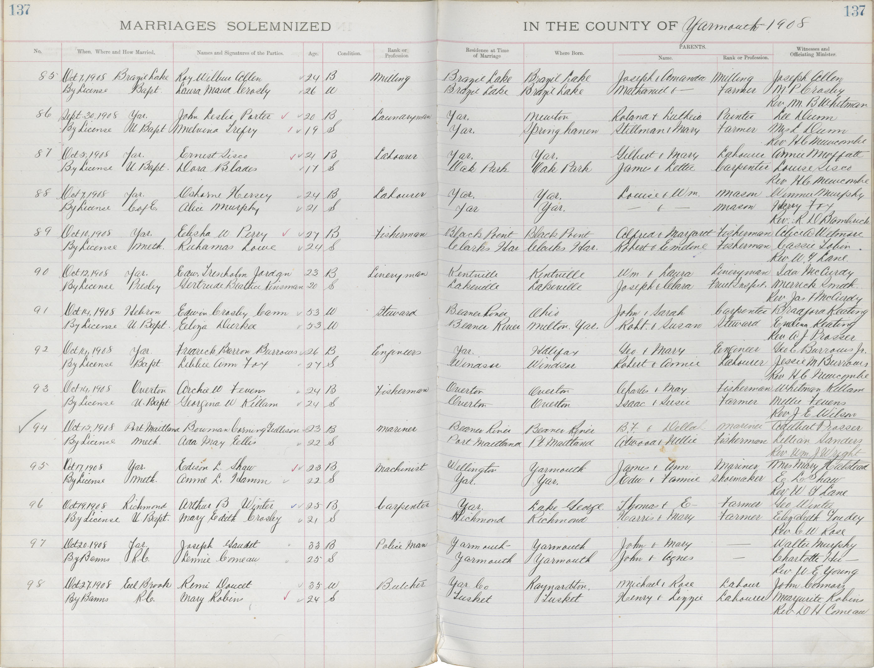 Registration: Year: 1908 book: 1840 page: 137 number: 98
