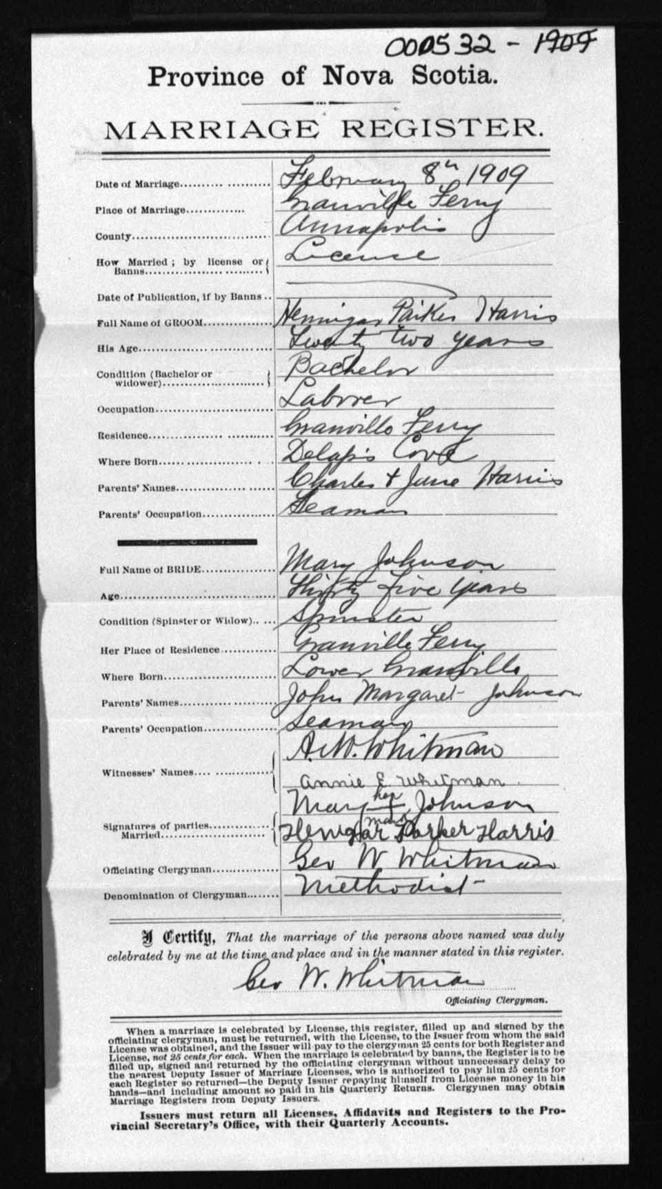 Registration: Year: 1909 number: 0532