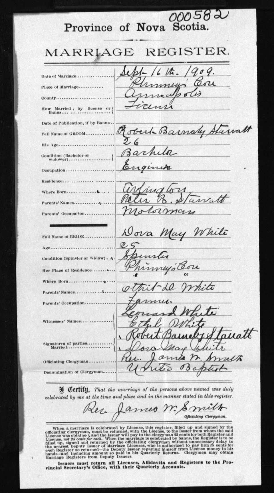 Registration: Year: 1909 number: 0582