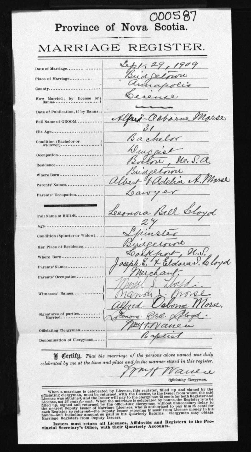 Registration: Year: 1909 number: 0587