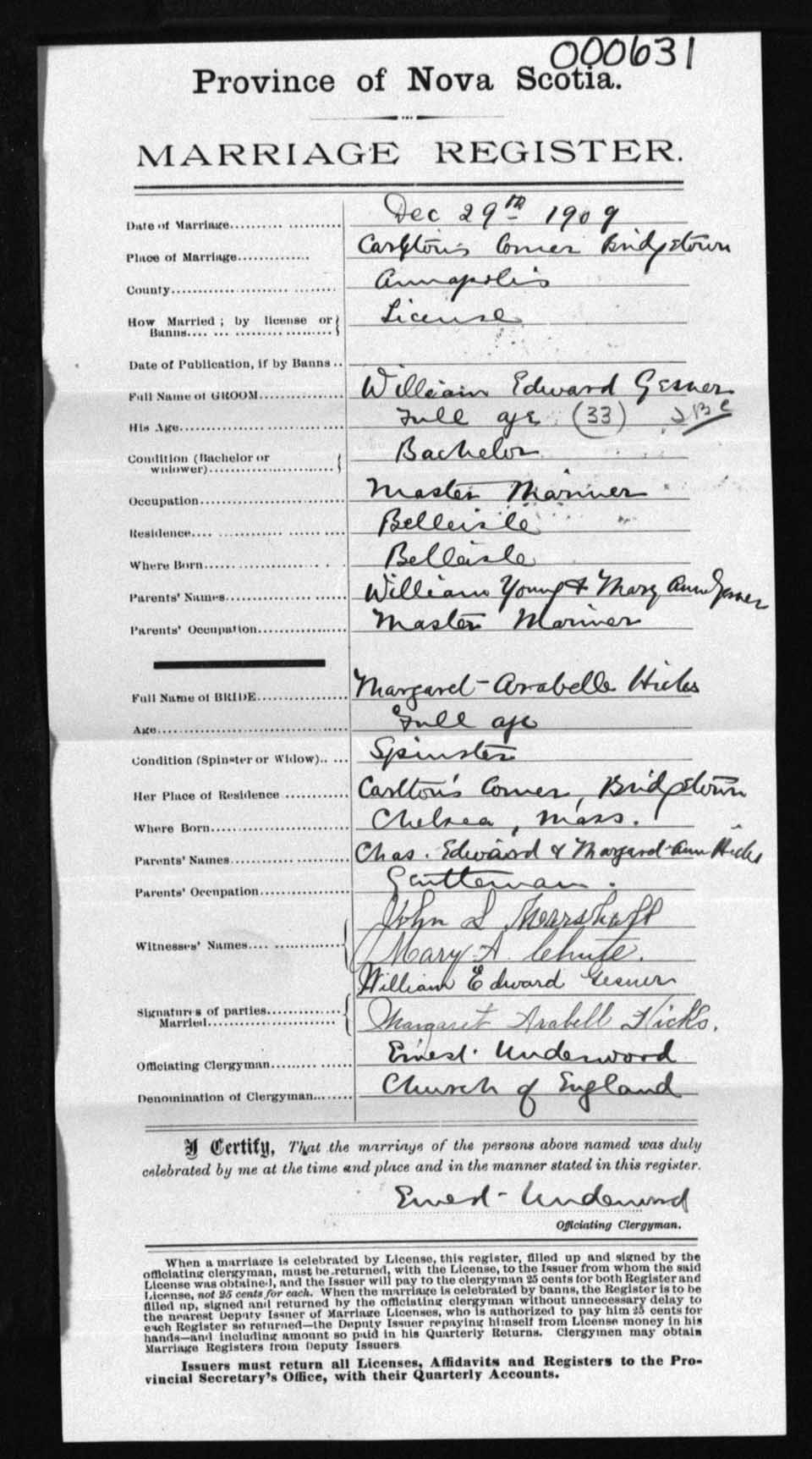 Registration: Year: 1909 number: 0631