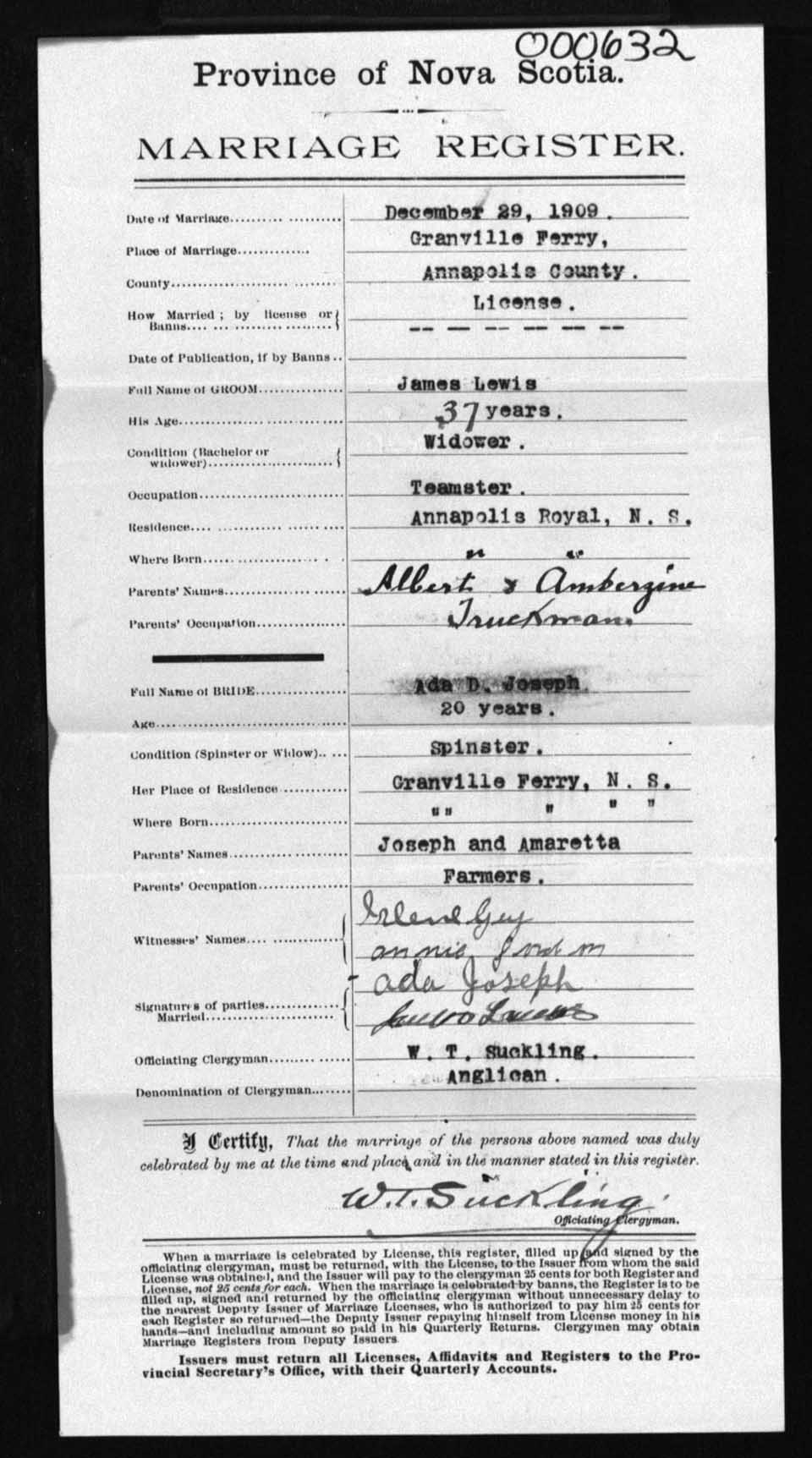 Registration: Year: 1909 number: 0632