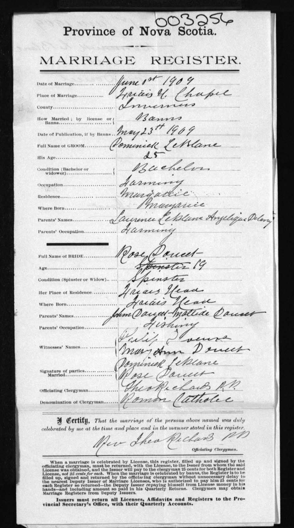 Registration: Year: 1909 number: 3256