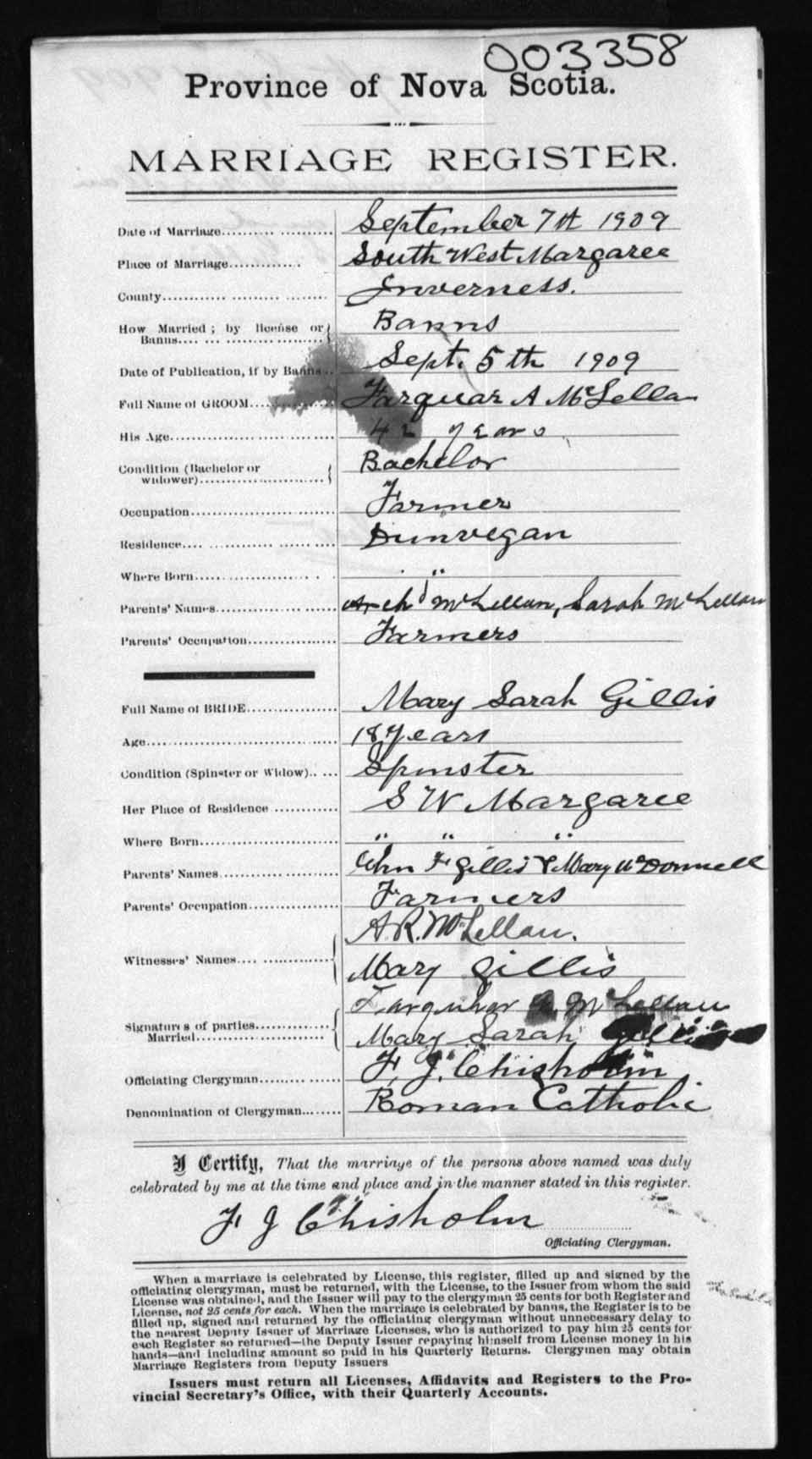 Registration: Year: 1909 number: 3358
