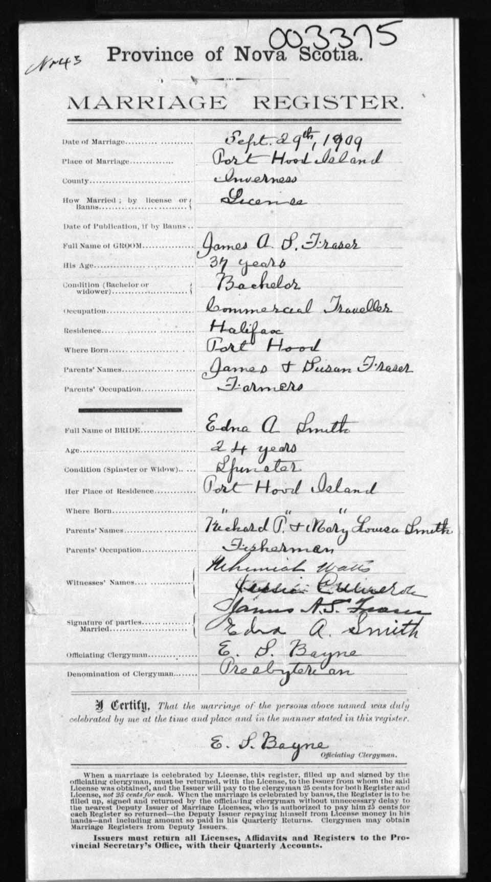 Registration: Year: 1909 number: 3375