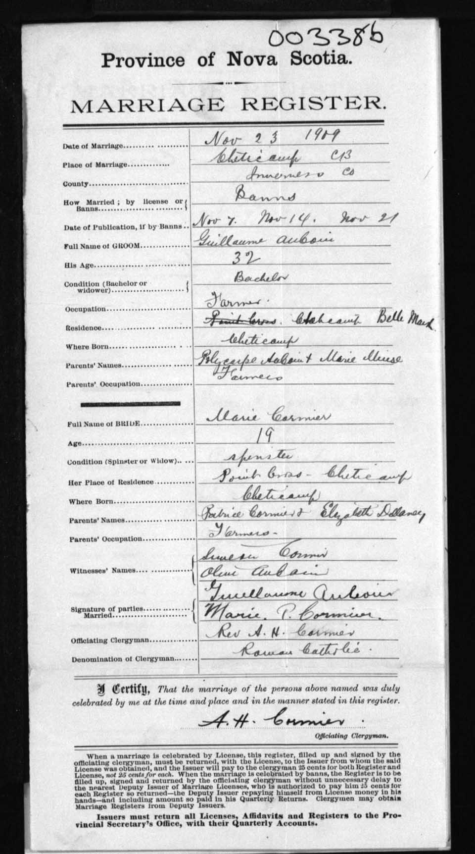 Registration: Year: 1909 number: 3386