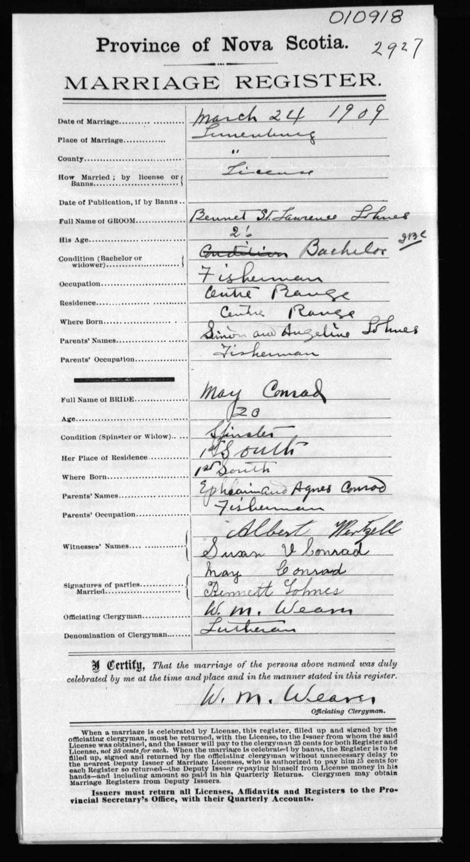 Registration: Year: 1909 number: 10918