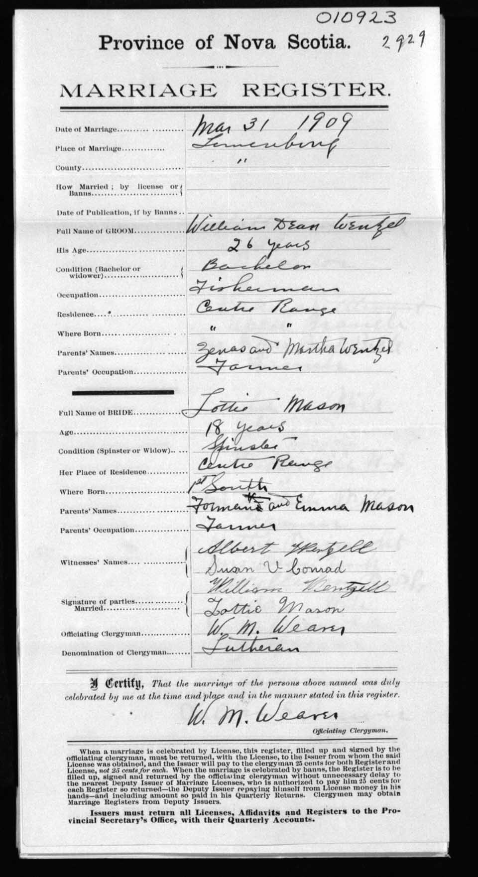 Registration: Year: 1909 number: 10923