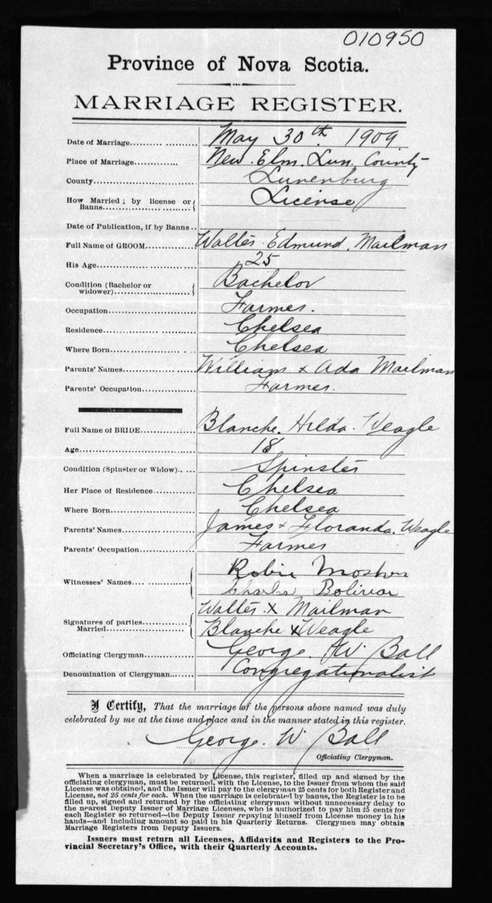 Registration: Year: 1909 number: 10950