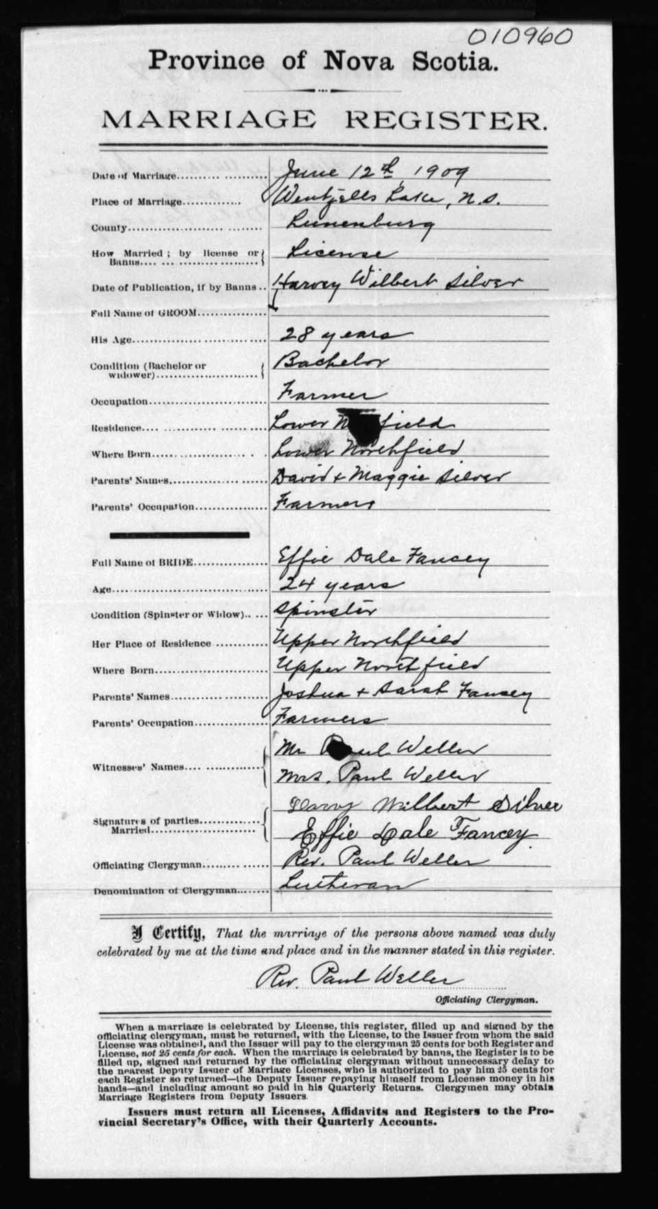Registration: Year: 1909 number: 10960