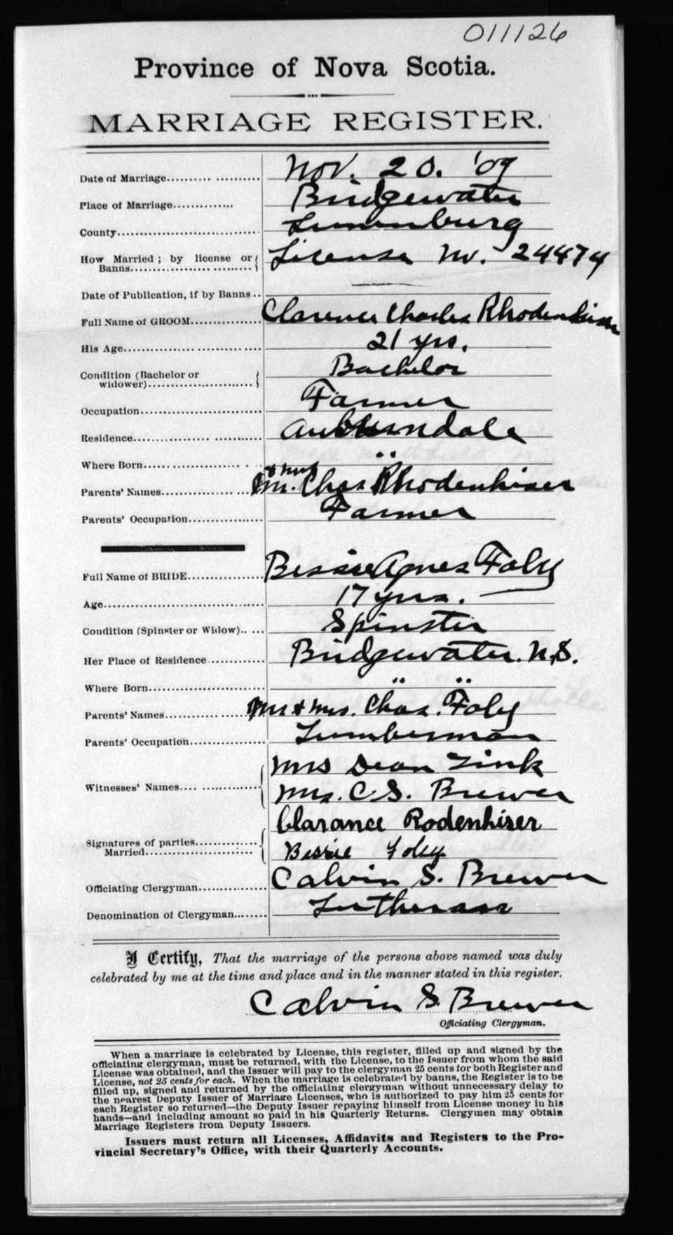 Registration: Year: 1909 number: 11126
