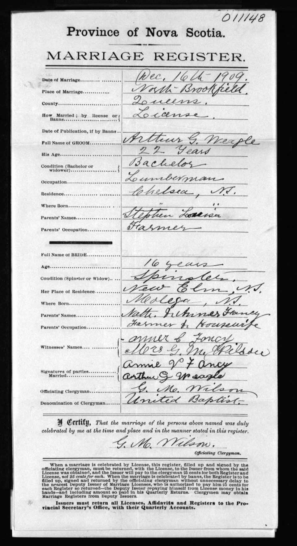 Registration: Year: 1909 number: 11148