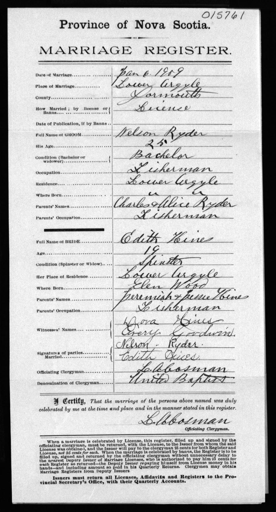 Registration: Year: 1909 number: 15761